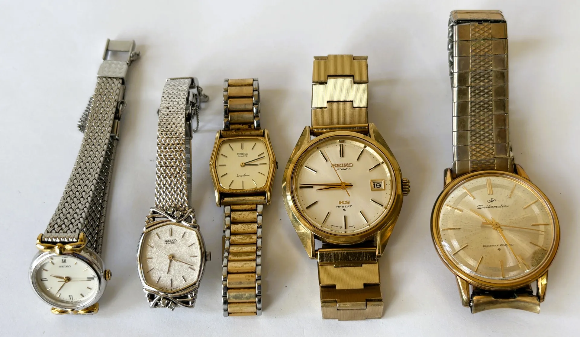 先日は、片付けや生前整理の中で再発見されたという《SEIKO エクセリーヌ 14K/ST》《キングセイコー Hi-Beat》《ダイヤショック》などをお買取りいたしました。なんと約50年前のお品で、「古いから価値がないかも…」と諦めていたそうですが、今まさにヴィンテージブーム再燃中🔥。市場では想像以上の査定額になることも珍しくありません!